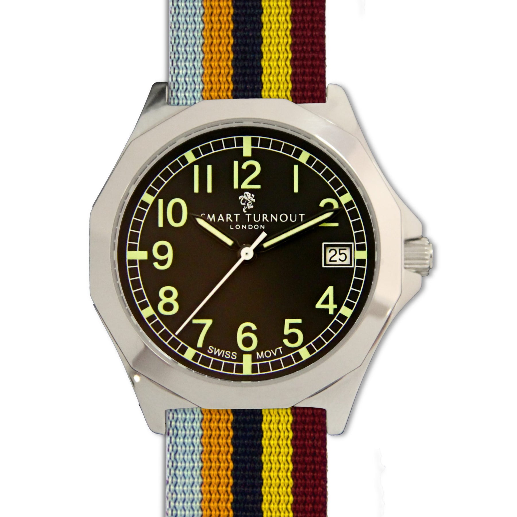 The RAF Regiment is a prestigious regiment in the British Army. By incorporating these iconic colours into the NATO strap, Smart Turnout London has created a military watch that celebrates British tradition while remaining stylishly contemporary.