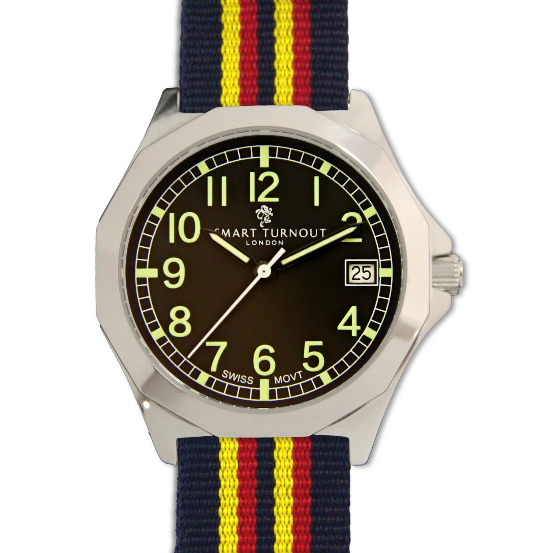 REME is a prestigious regiment in the British Army. By incorporating these iconic colours into the NATO strap, Smart Turnout London has created a military watch that celebrates British tradition while remaining stylishly contemporary.