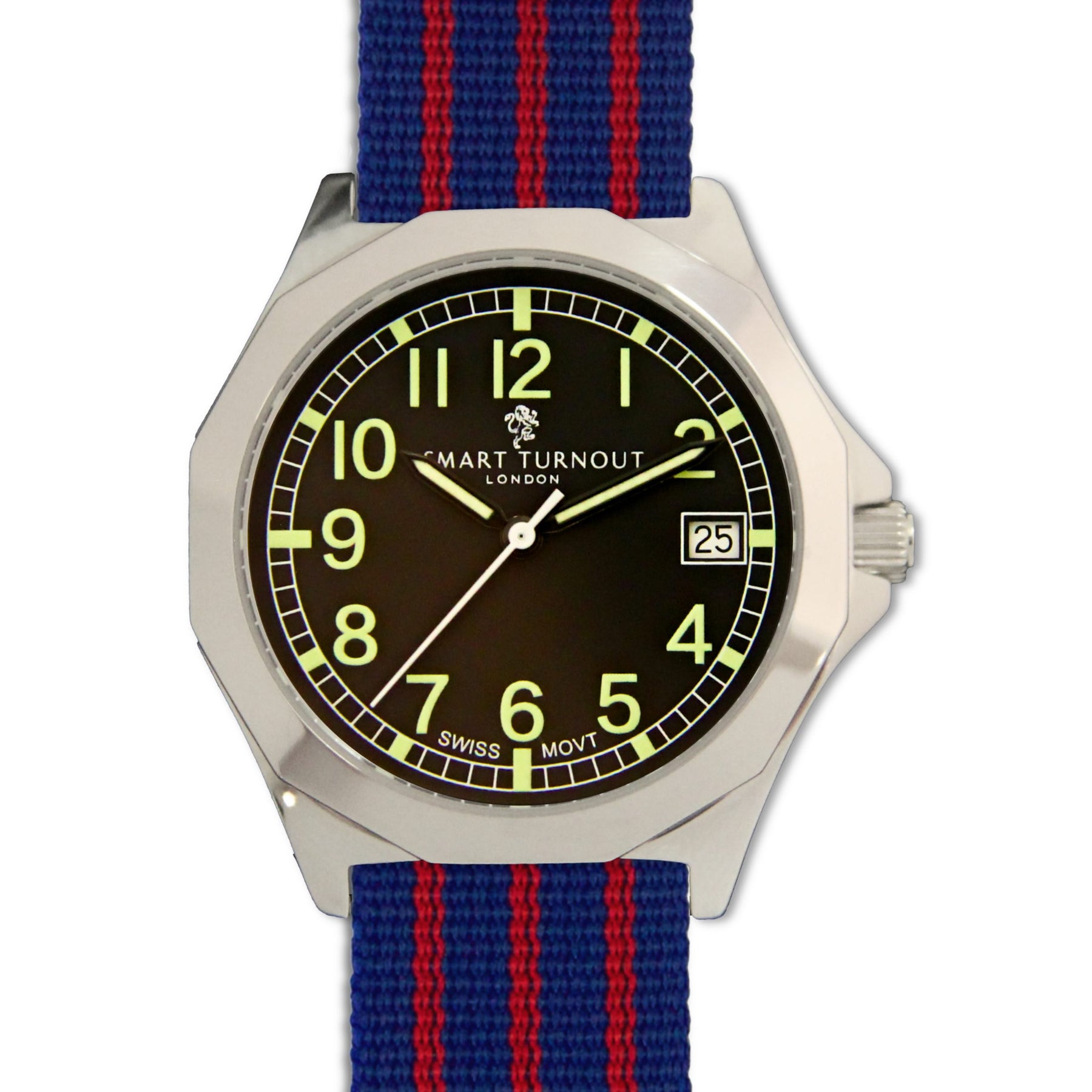 The Royal Army Ordnance Corps was a prestigious regiment in the British Army. By incorporating these iconic colours into the NATO strap, Smart Turnout London has created a military watch that celebrates British tradition while remaining stylishly contemporary.